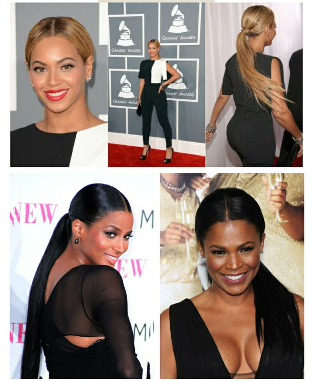 For a sleekier look, try a bone straight ponytail and a middle- part for instant sophiscation.